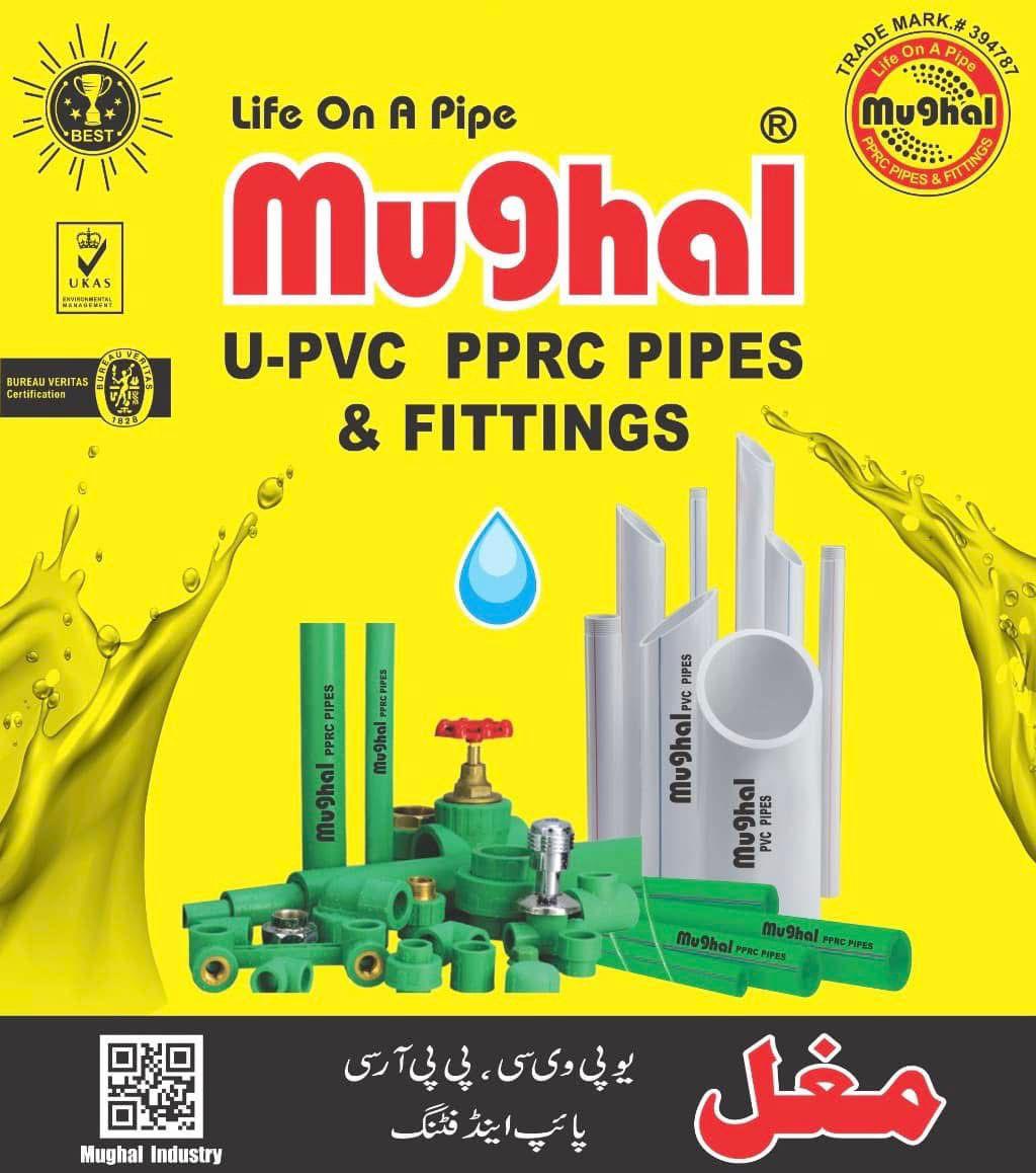 Mughal Pipes delivers quality, durability, and trust with every product. Our U-PVC and PPRC solutions ensure safe water flow and strong connections—building a better future, one pipe at a time